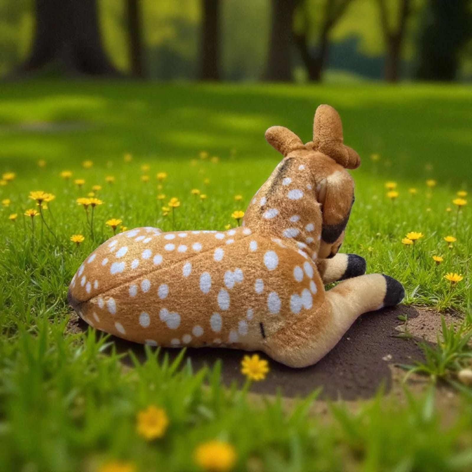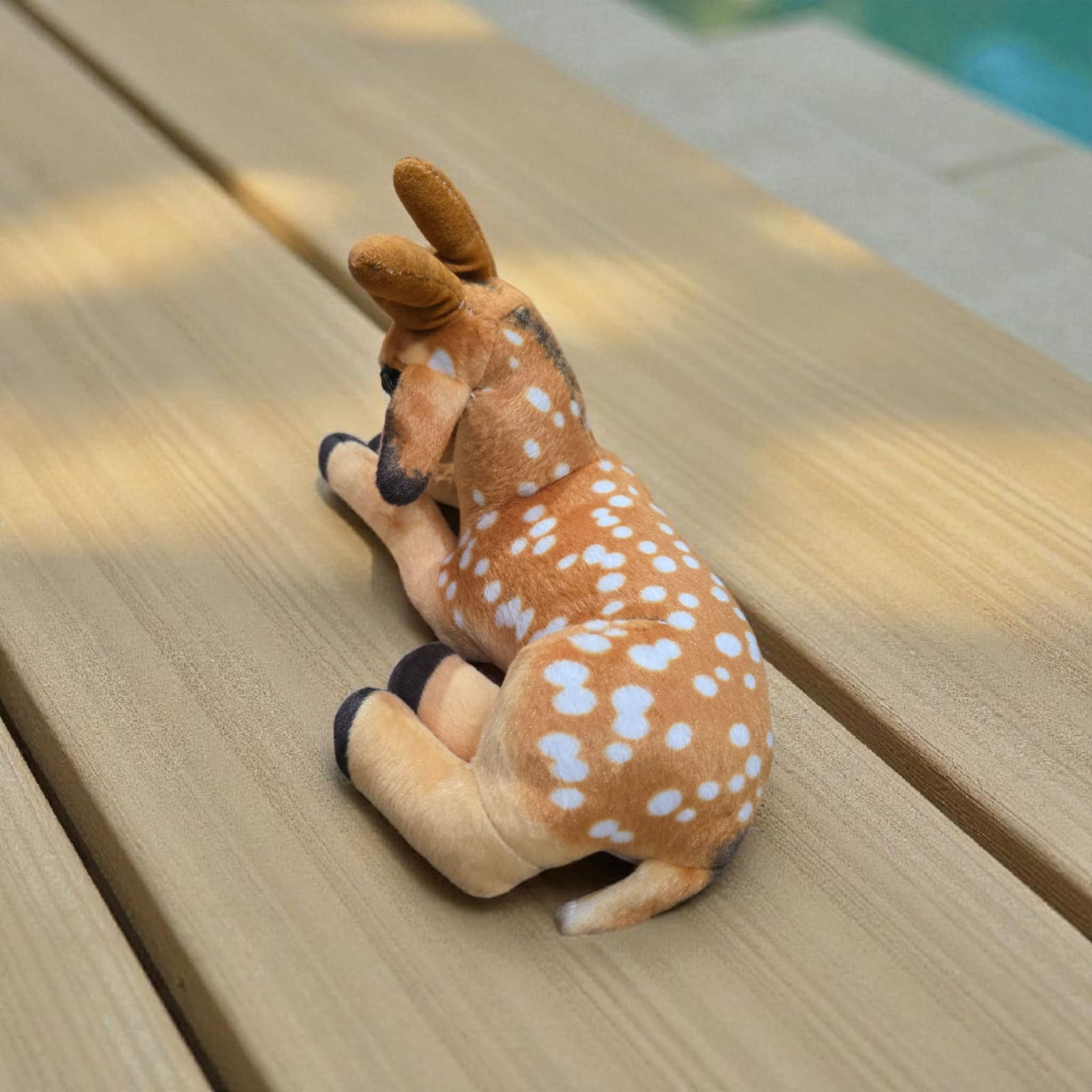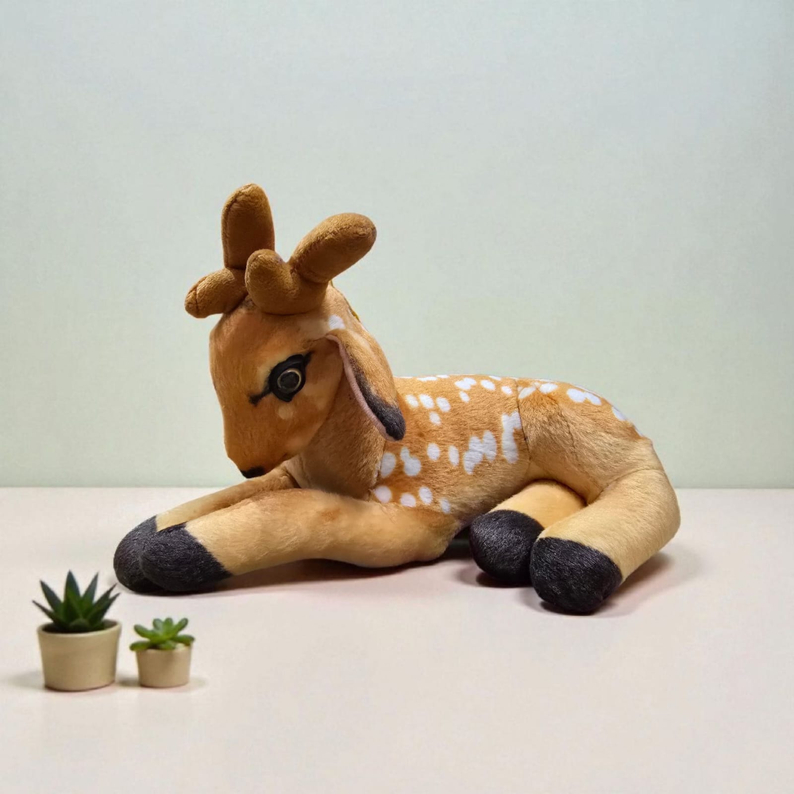 Cute spotted deer plush toy with a cozy, lifelike design. Great for kids, collectors, and nursery décor.