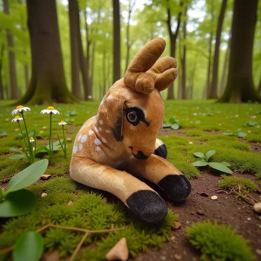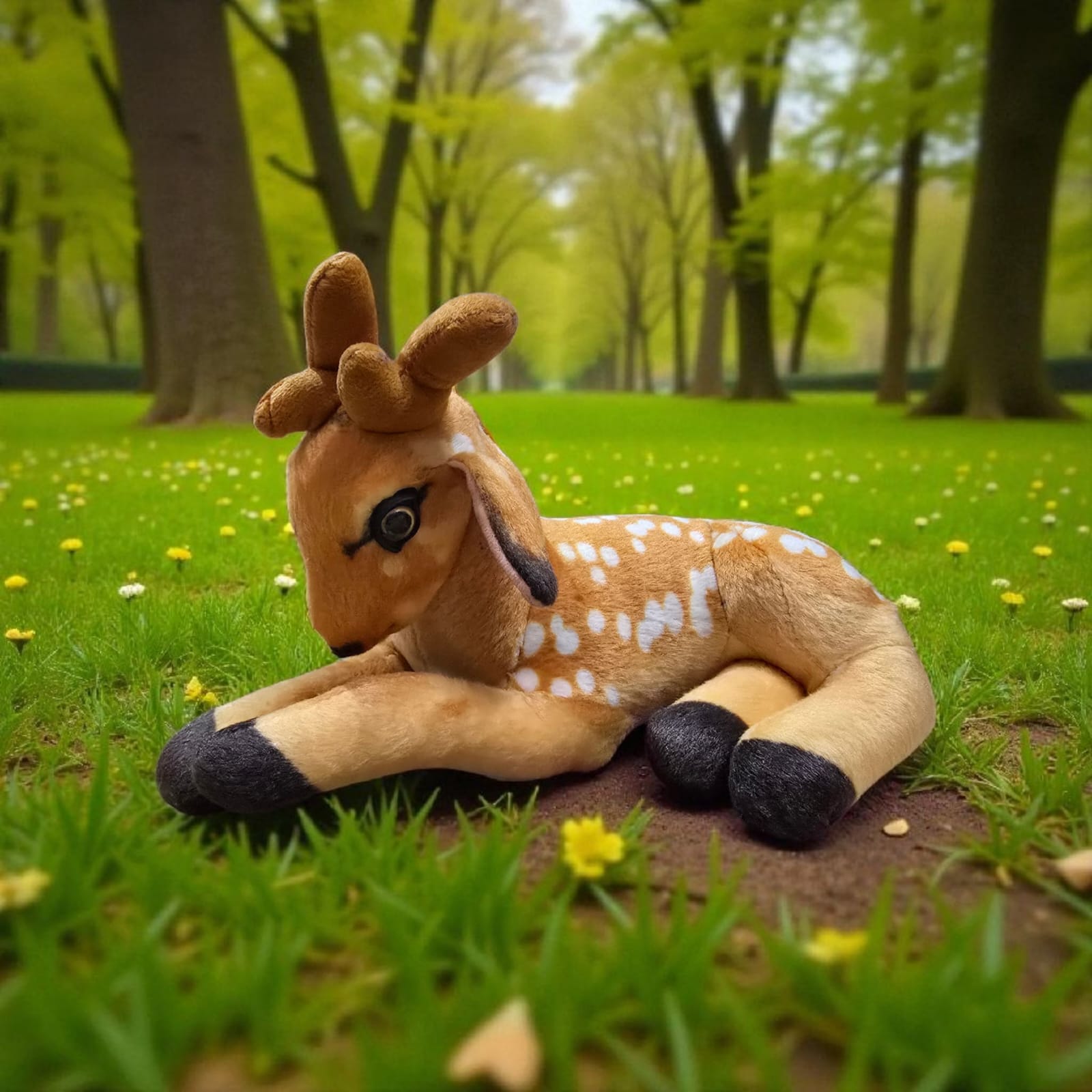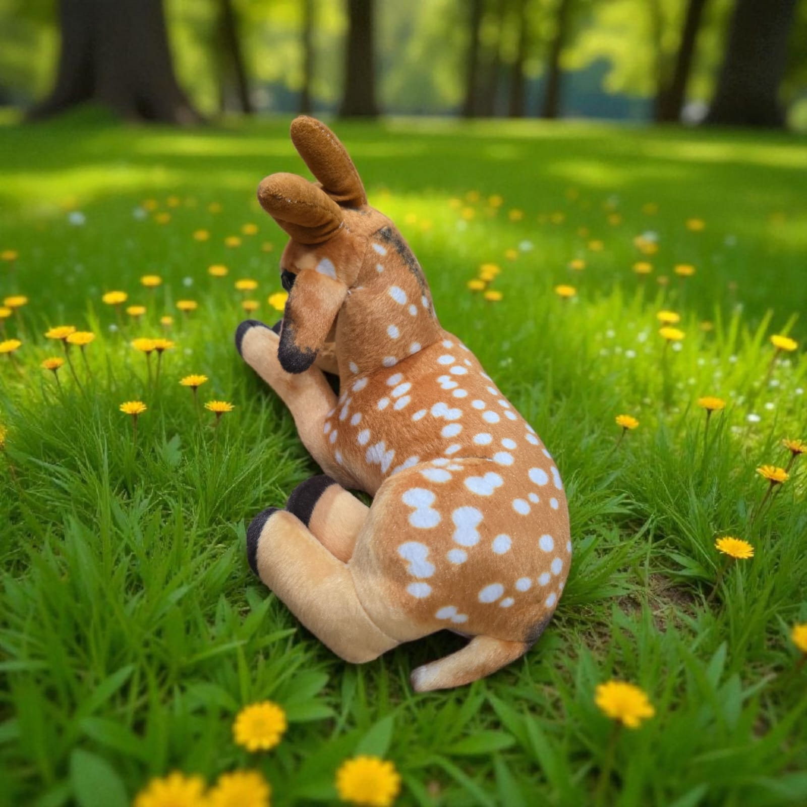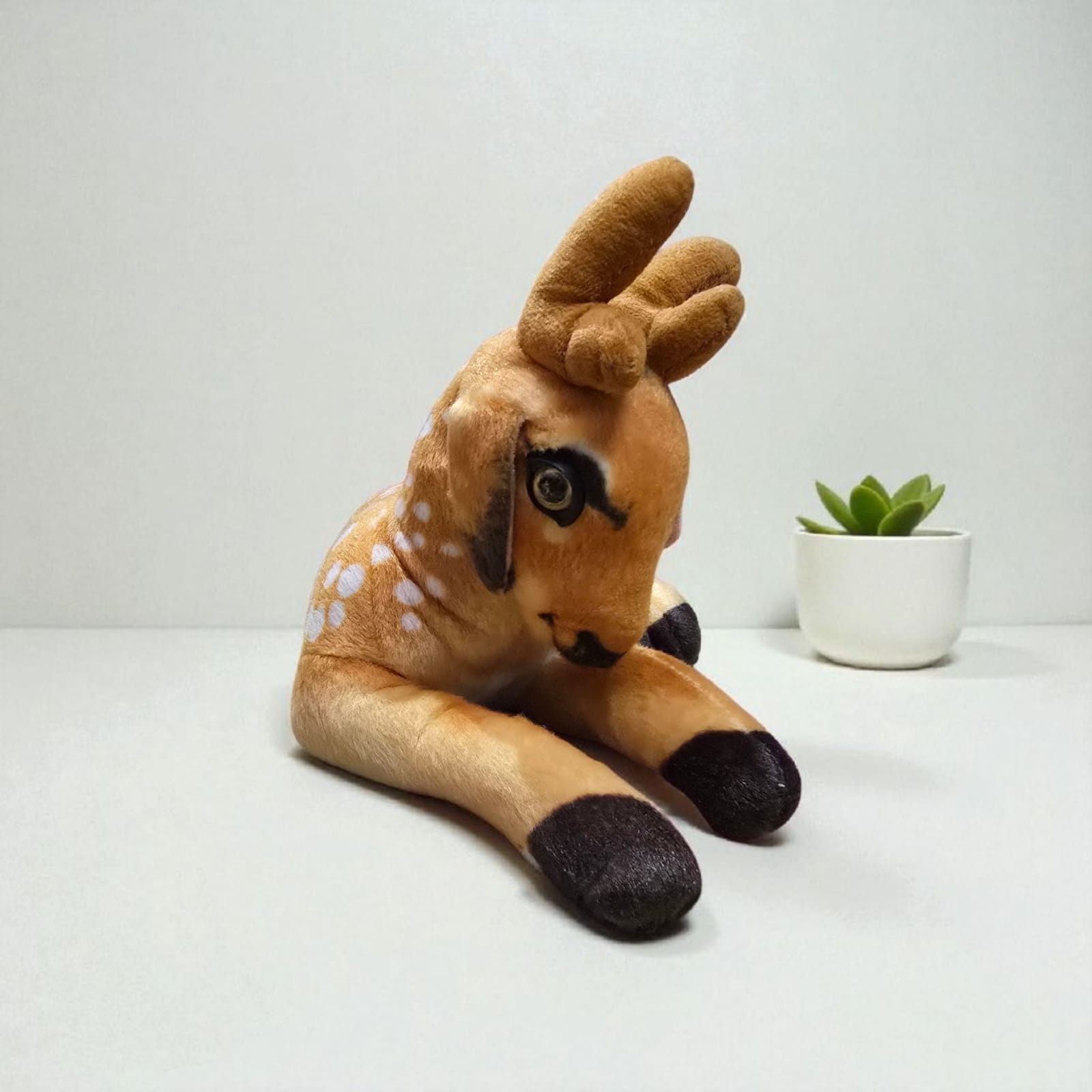 Cute spotted deer plush toy with a cozy, lifelike design. Great for kids, collectors, and nursery décor.